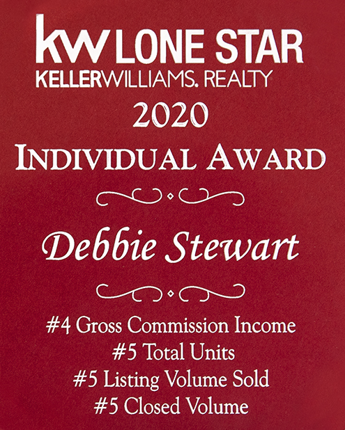 Because of all of you great clients, I am pleased to announce that I have received the following awards from Keller Williams Realty Lone Star